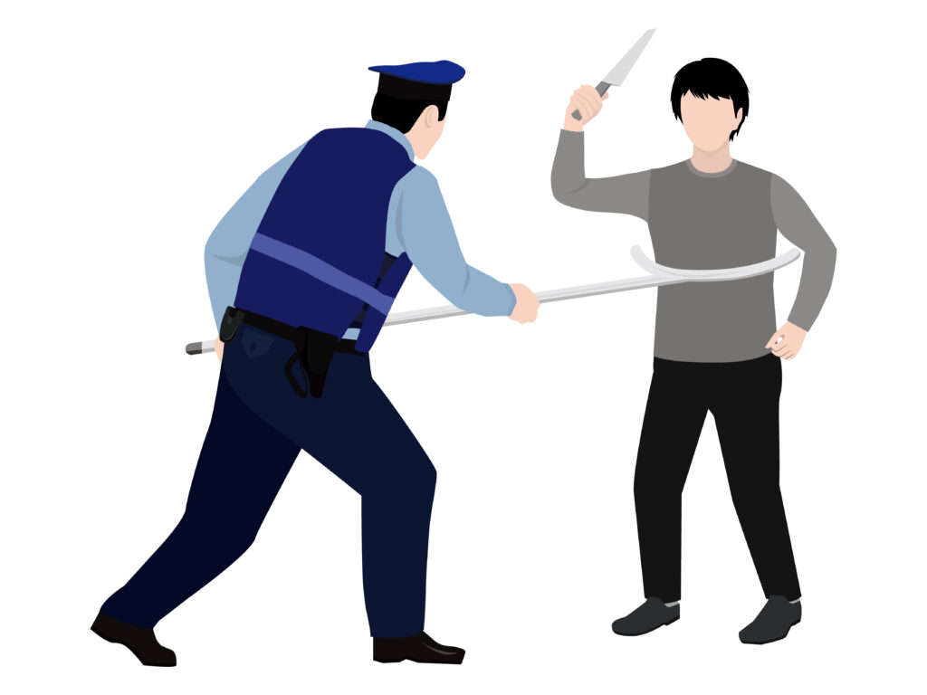 - 学校や幼稚園に備え付けられている刺股の使用方法などを指導します。